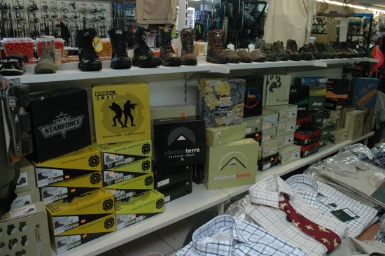 Nombreux modèles de chaussures et de bottes exposées